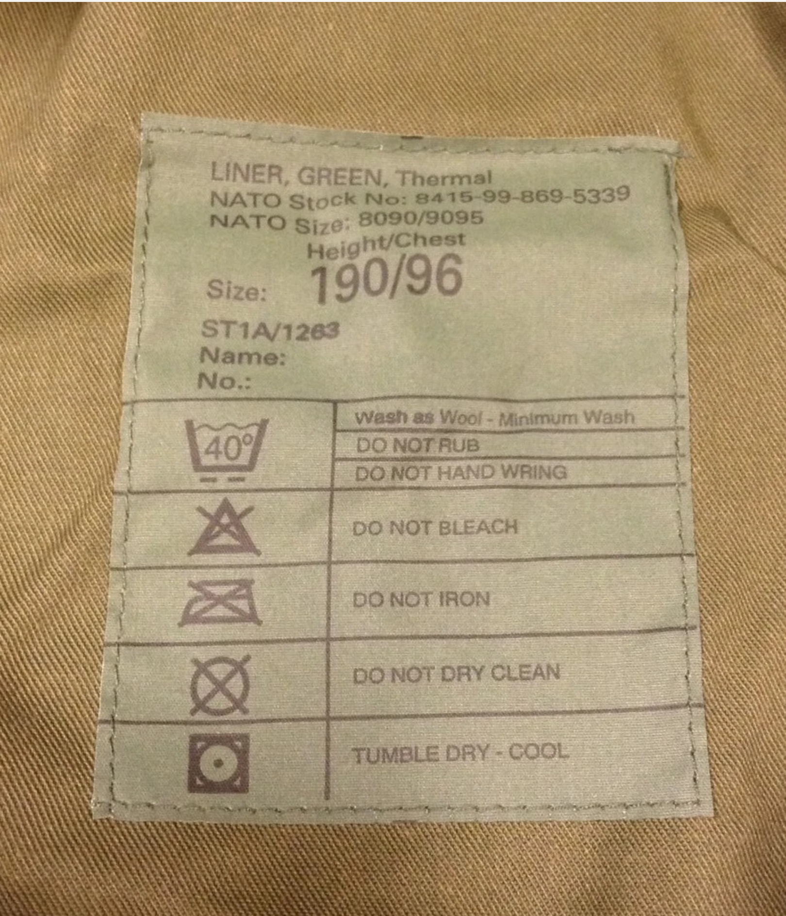 British Army Fleece Thermal Liner, Size 190/96, Large, Unissued, Energy Saver.